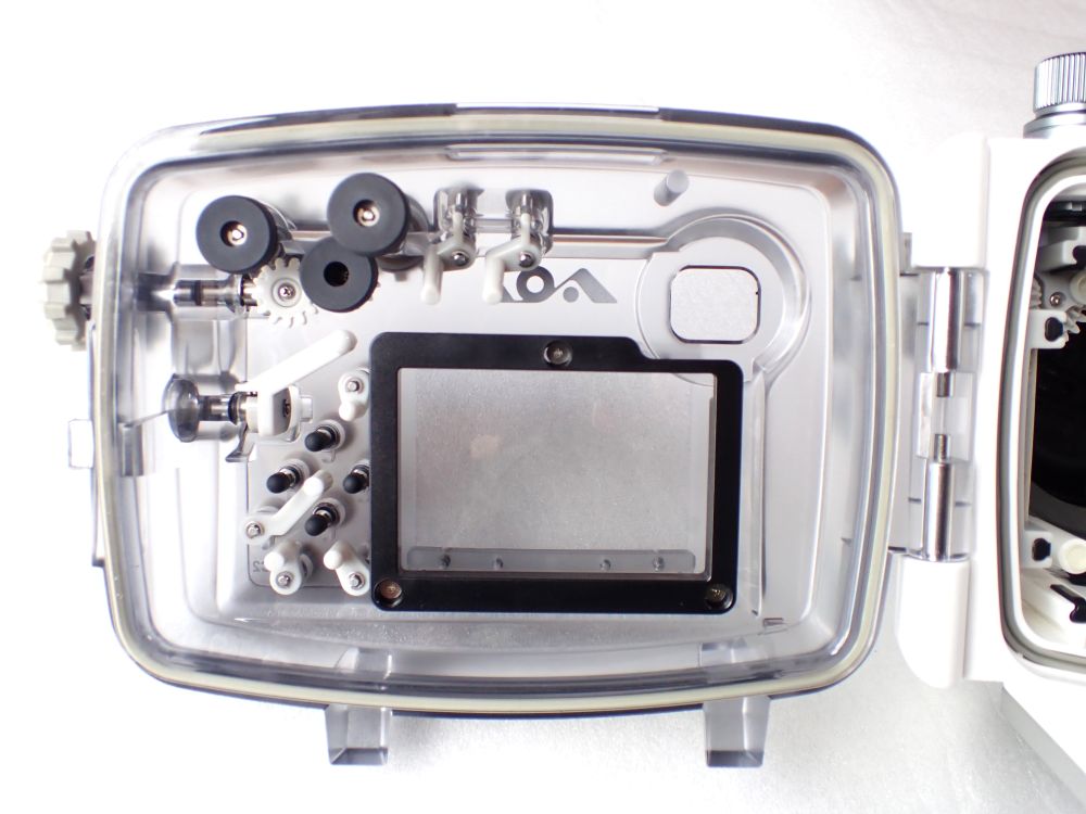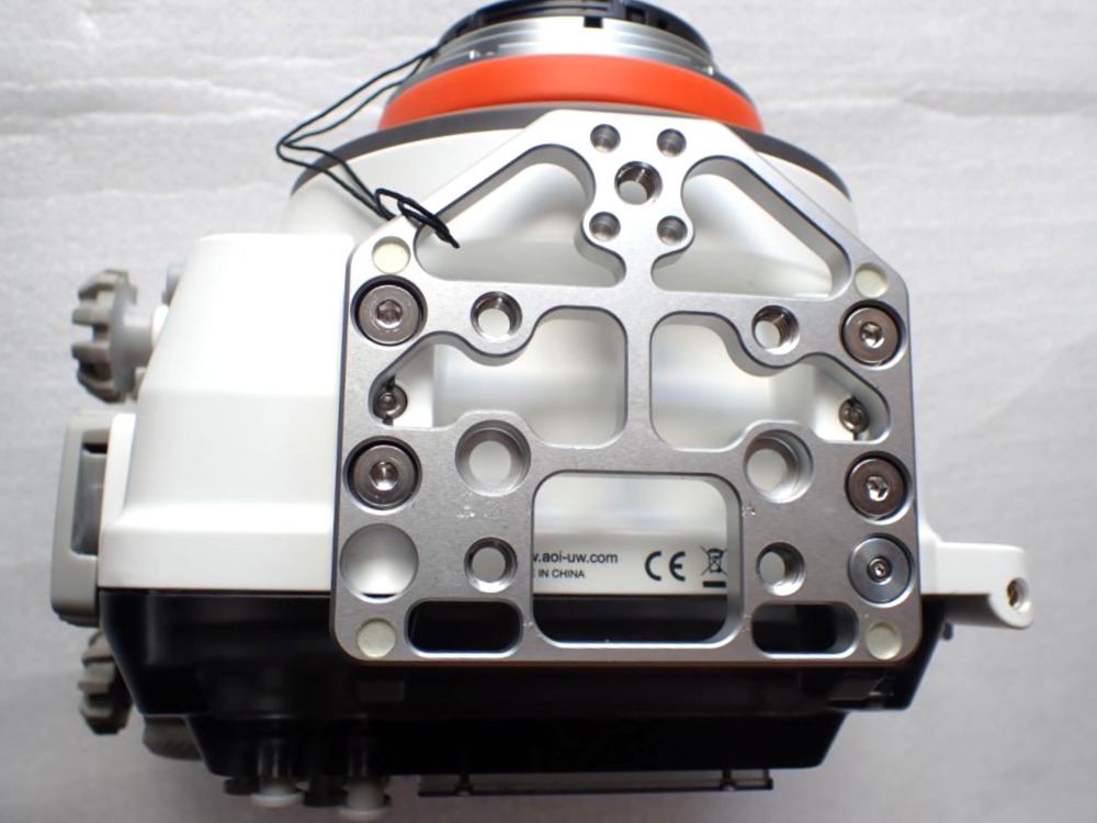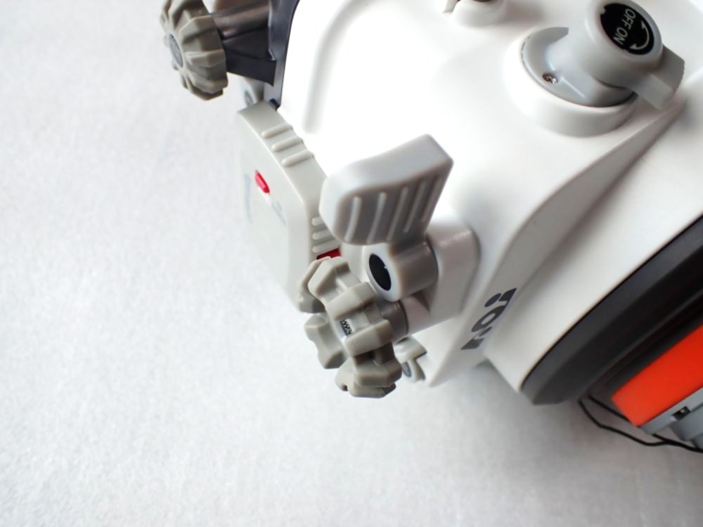 AOI UH-OM-1ハウジングに搭載されいるマルチファンクションユニットと同様、バキュームリークシステム、モイスチャーセンサー、HSS対応ストロボ発光LEDを一体化した電子コントロールデバイスを踏襲しています。耐水圧60mの強固なハウジングです