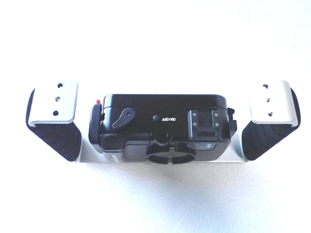 MPBK-05両手グリップの両側にダイレクトベースを取りけ用のM5ネジ穴もありストロボを2灯にする場合も安定したストロボの設定が可能になります